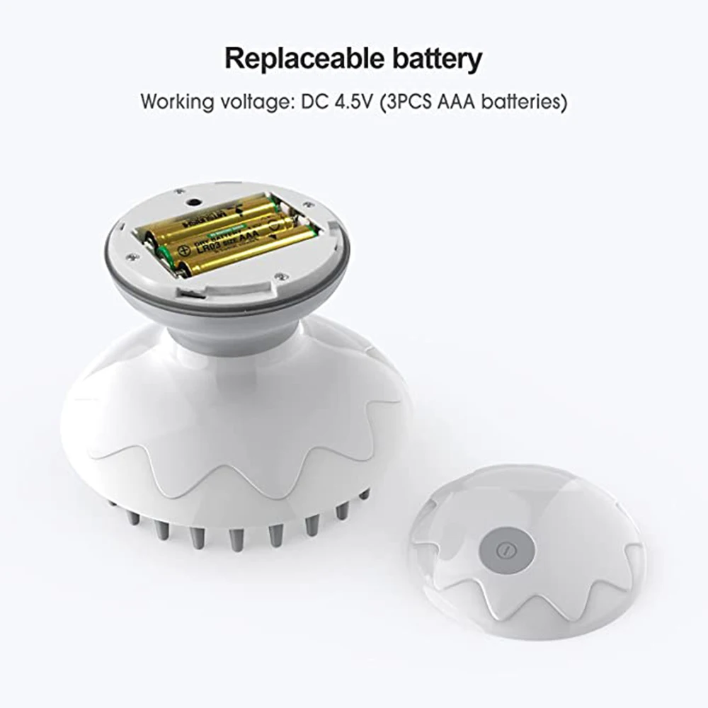 One button control, shortly press to turn on and switch different vibration at your needs, battery operated head massager is very easy to change the batteries and use anywhere.